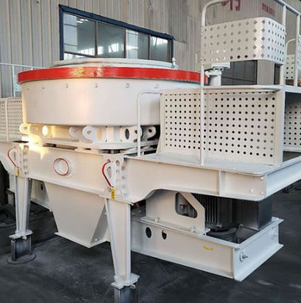 石料進(jìn)入后,會(huì)被分成兩部分,一部分由分料盤(pán)落入甩輪,在甩輪中被迅速加速,然后拋射出去,首先同分料盤(pán)四周落下的另一部分石料沖擊破碎,然后一起沖擊到破碎腔的物料襯層上,被反彈后斜向上沖擊到破碎腔頂部,改變方向向下運(yùn)動(dòng)。這樣,石料在制砂機(jī)破碎腔中受到多次撞擊、摩擦和研磨作用而達(dá)到破碎目的。